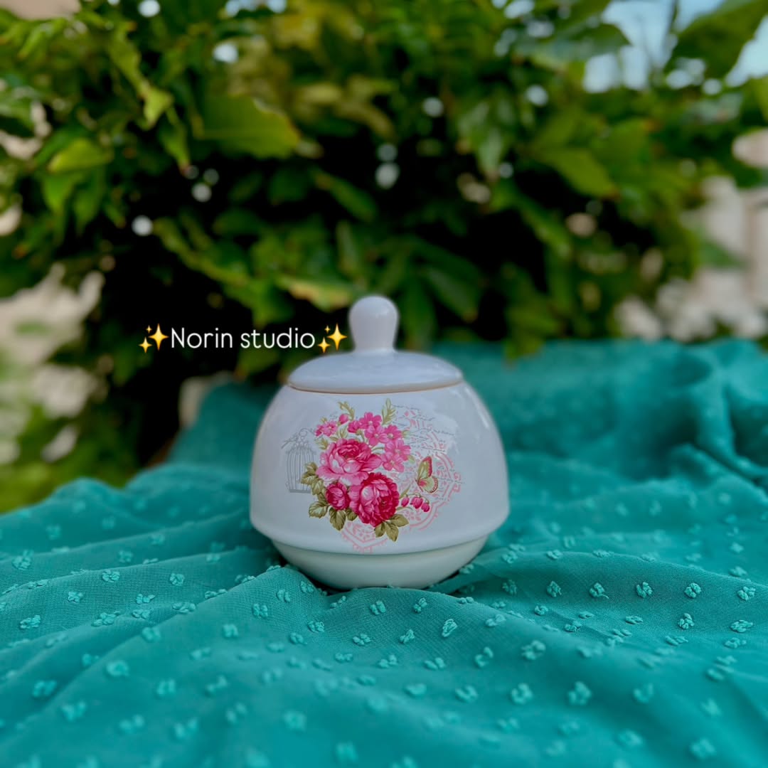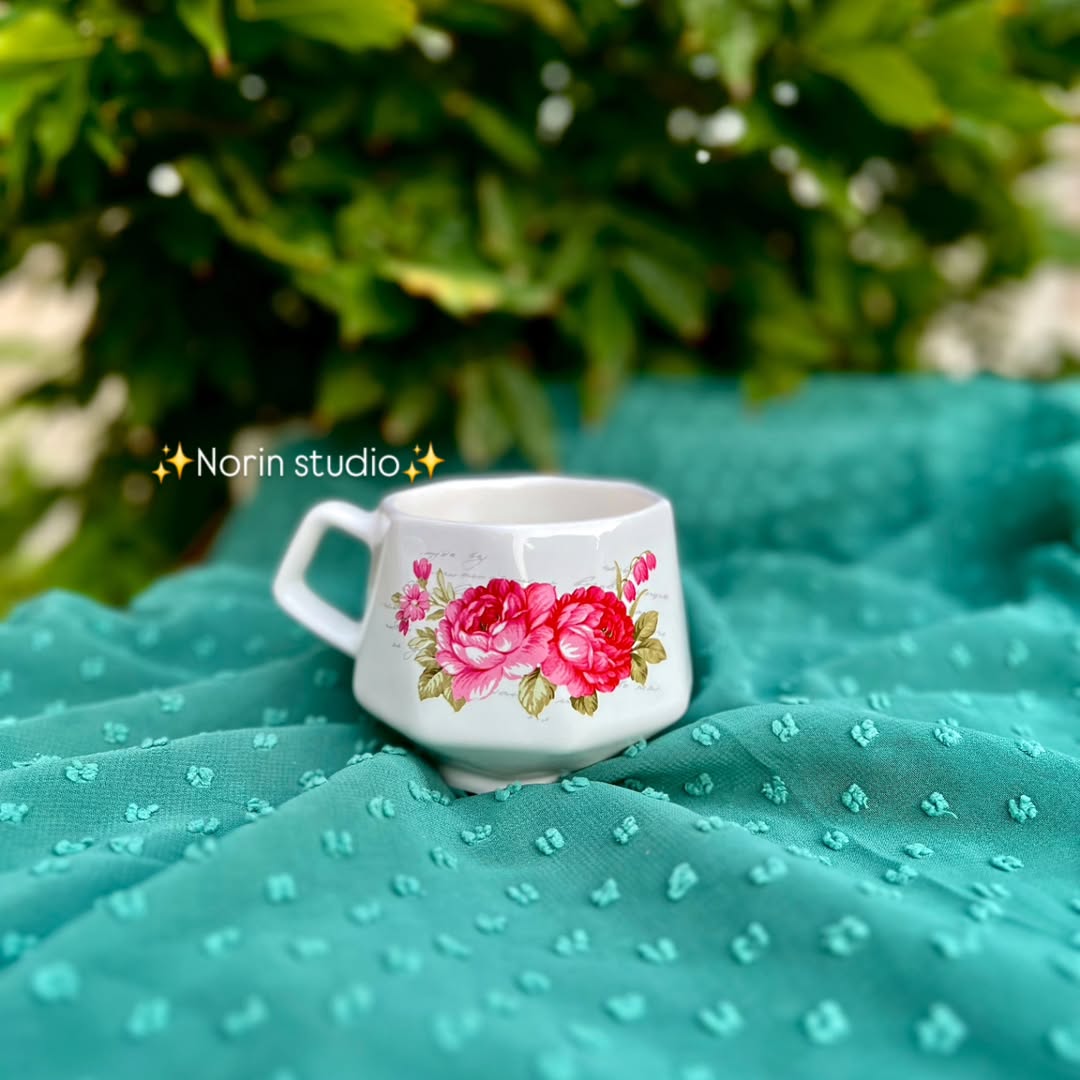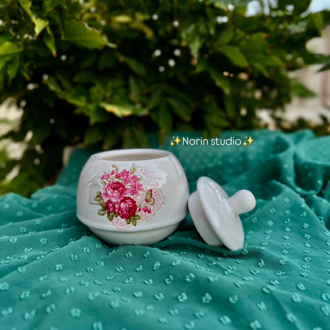 دو عدد فنجان یک عدد قندان و یک عدد سینی چوبی