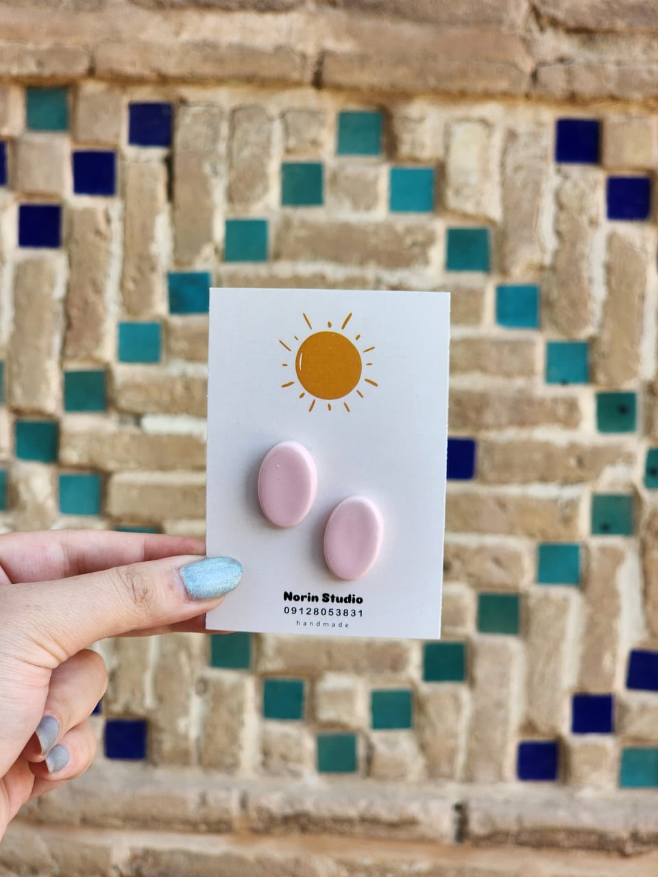 گوشواره دست ساز سرامیکی بسیار راحت و سبک مناسب استایل های خاص با میخ استیل